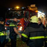 Toen de politie vervolgens naar de woning van de verdachte aan de Middellaan ging kwamen daar net enkele personen met tassen naar buiten lopen en bij het zien van de politie gingen ze er vandoor. Bij de achtervolging die toen volgde, loste de politie een waarschuwingsschot. Twee mannen van 25 en 27 jaar konden worden aangehouden. een derde persoon bleef spoorloos.