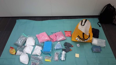 In de tassen van de mannen werd 40.000 euro contant geld en de volgende verdovende middelen aangetroffen: 0,5 kg cocaïne, 10 kg XTC, 2 kg 4c-b een psychedelische drug, enkele vellen LSD, 4 kg MDMA en 0,5 kg chrystal meth. Na de aanhoudingen heeft de politie de woning doorzocht. Daarbij is een verborgen ruimte aangetroffen. Deze was leeg. De inhoud van de winkel zat waarschijnlijk in de tassen.