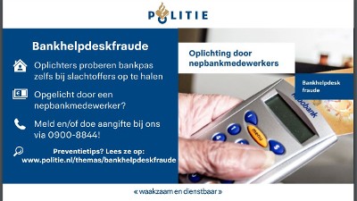 Lees meer over bankhelpdeskfraude op Politie.nl. https://www.politie.nl/themas/bankhelpdeskfraude.html