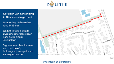 Op basis van het signalement is diezelfde dag een man aangehouden. Hij is verhoord en daarna heengezonden. We zoeken getuigen die mogelijk meer kunnen vertellen over deze aanranding.
