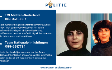 PolitieberichtenMidden-Nederland – Team Cold Cases wil in gesprek met mogelijk belangrijke tipgever zaak Judit Nyari door 112regio 5 jaar geleden5 jaar geleden